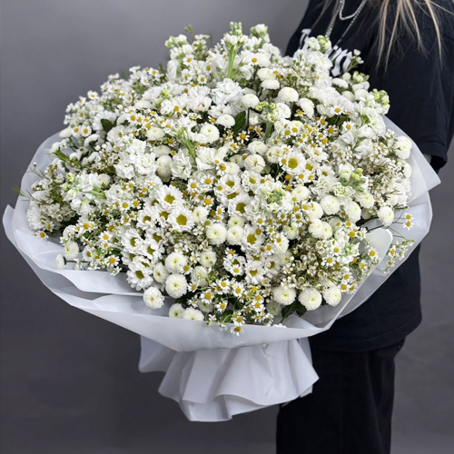 Букет "Эдем" из хризантем, маттиол и ромашек