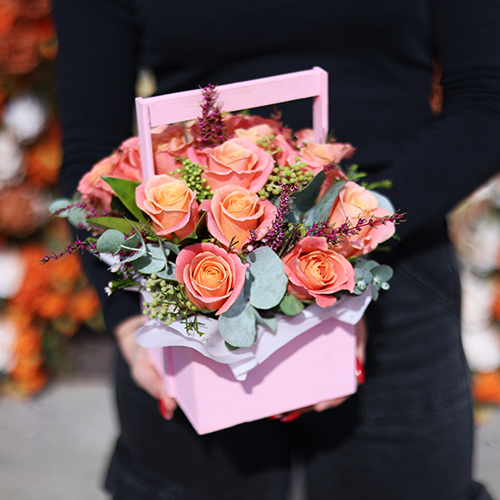 Композиция в ящике из роз Мисс Пигги и капса