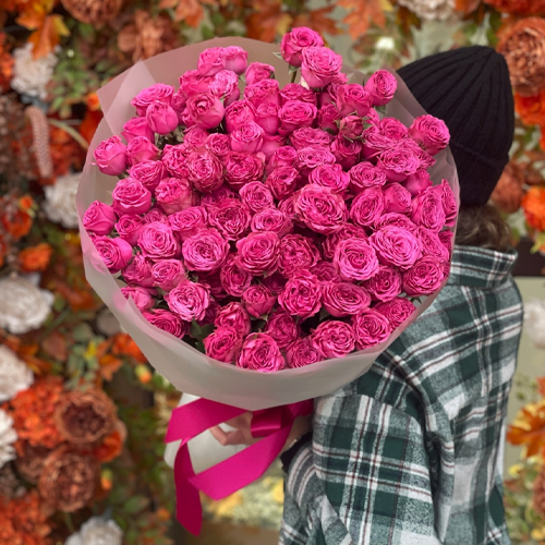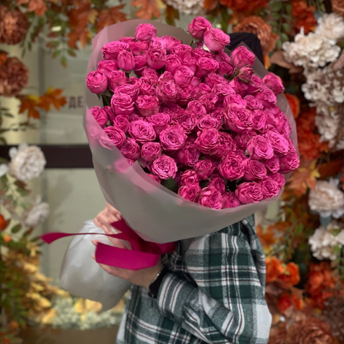 Букет из 35 малиновых кустовых пионовидных роз (60 см)